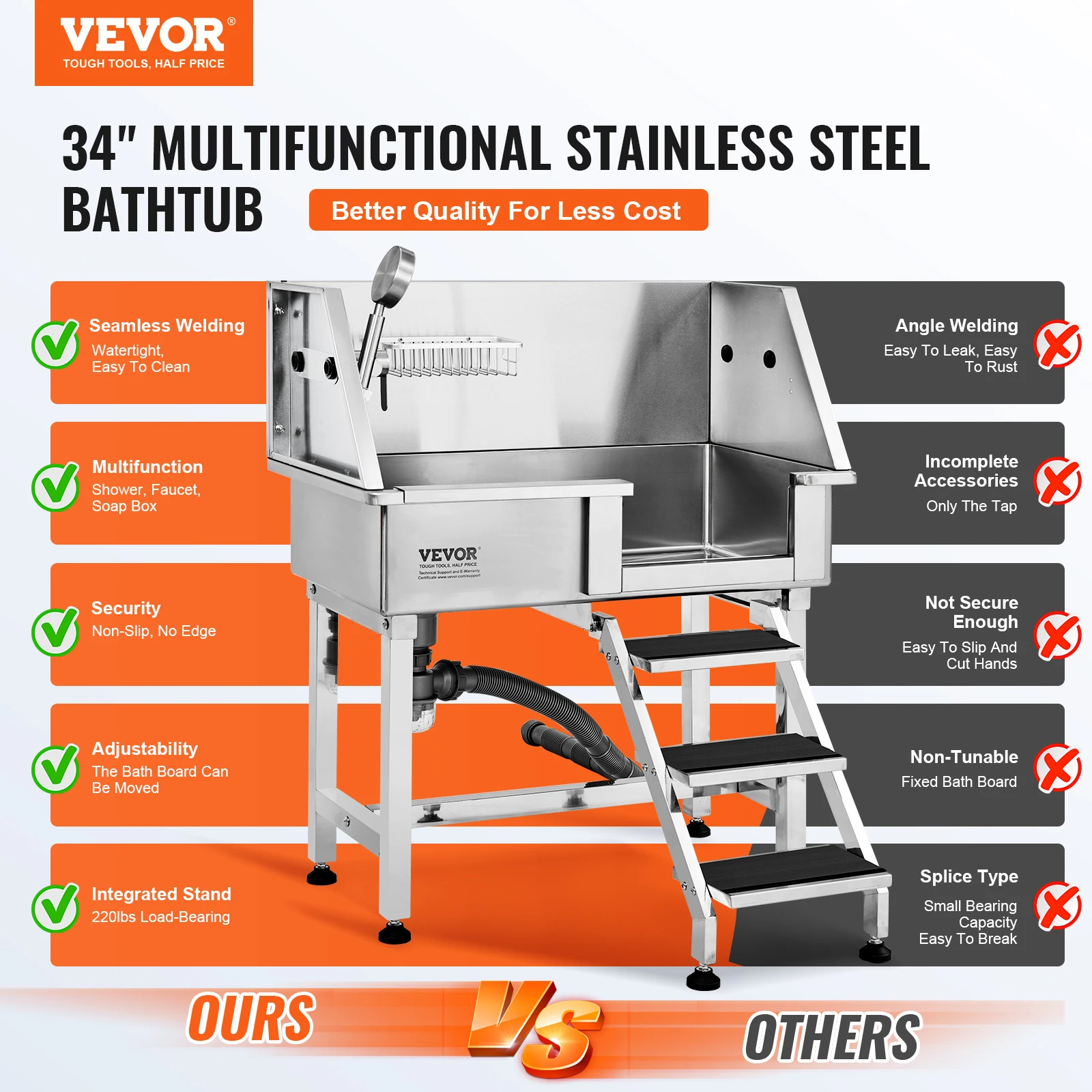 VEVOR 34″ Pet Dog Bathing Tub